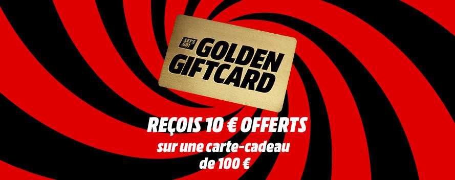 Envie de marquer des points avec la Golden Giftcard de MediaMarkt ? C’est ta chance ! Achète dès maintenant une carte cadeau de 100 € et nous en faisons 110 €. Tu profites ainsi d’un petit extra pour te faire plaisir avec les dernières technologies, ou pour faire plaisir à quelqu’un d’autre. Des smartphones et tablettes aux casques audio et accessoires gaming – avec la Golden Giftcard, tu es toujours gagnant. Saisis vite ton occasion en or !
