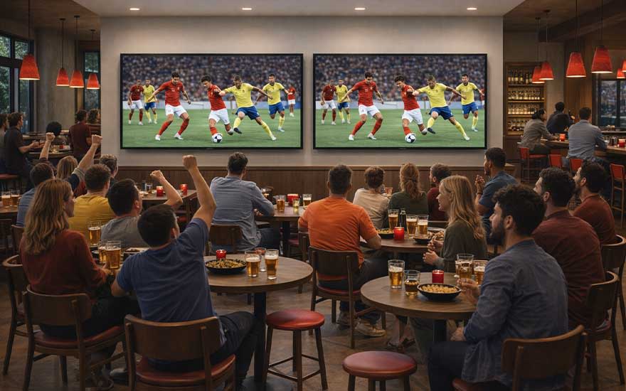 Augmentez le plaisir de regarder la Coupe du Monde avec nos grands téléviseurs, adaptés pour les cantines et autres grands espaces professionnels. D’une image 4K ultra-nette à une action fluide : personne ne rate un but, un ralenti ou une décision VAR. Un investissement professionnel, des moments de joie partagés.