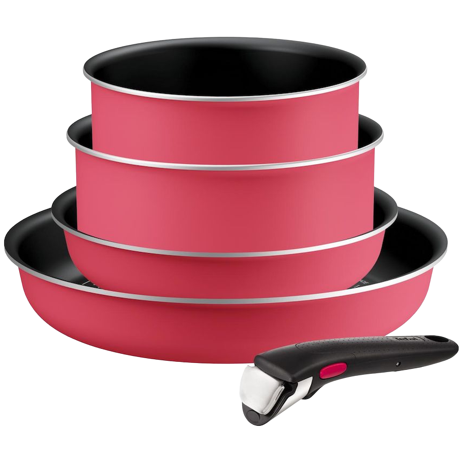 5-delige aluminium pannenset voor alle soorten fornuizen, inclusief inductie 2 koekenpannen 22/28 cm, 2 steelpannen 18/20 cm + afneembare handgreep