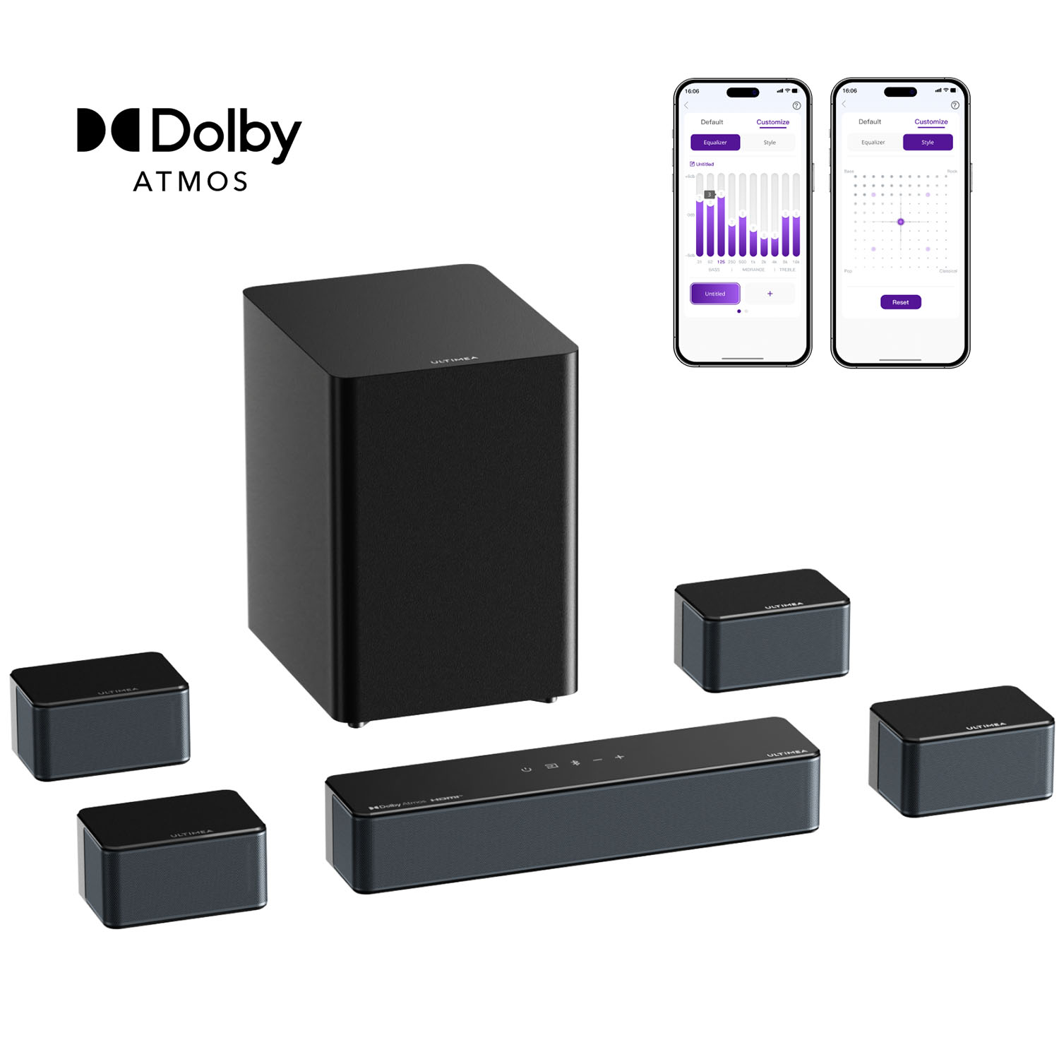 ULTIMEA Poseidon M60 Boom - 5.1 Luidsprekersysteem met Dolby Atmos en Subwoofer, App Bediening, Soundbar Zwart